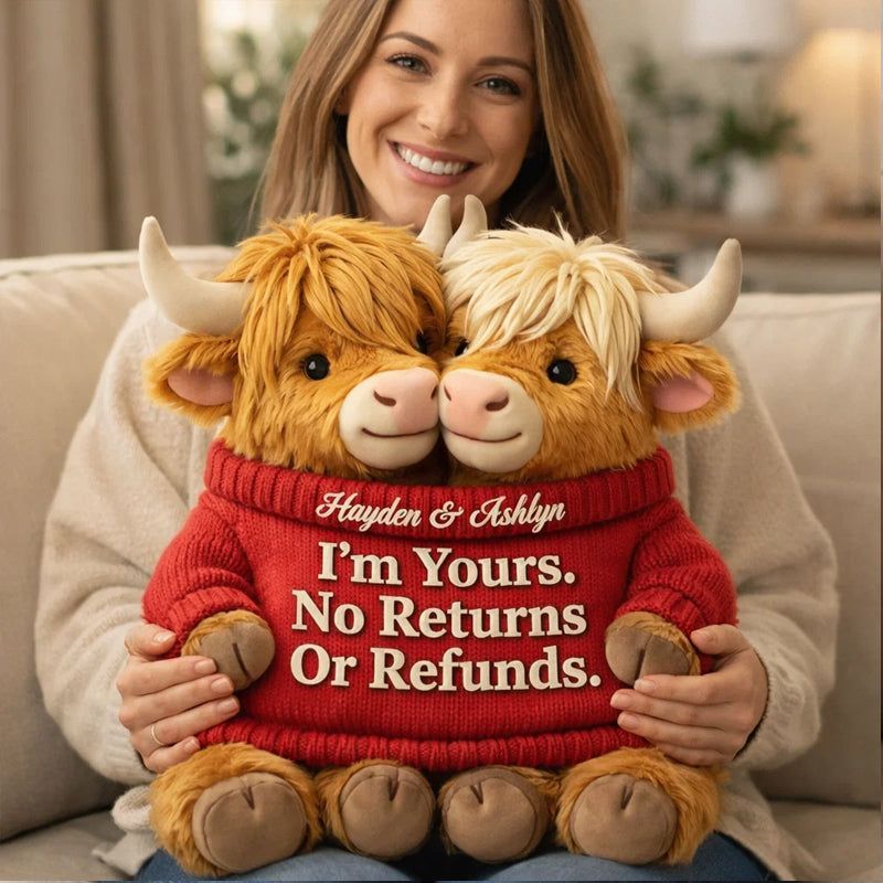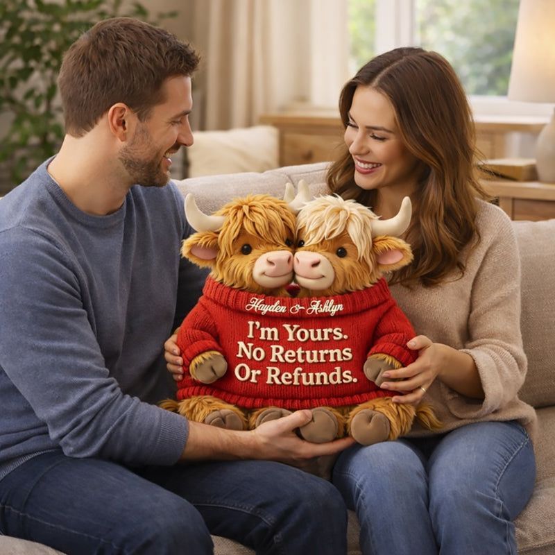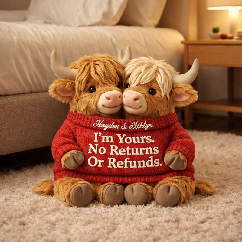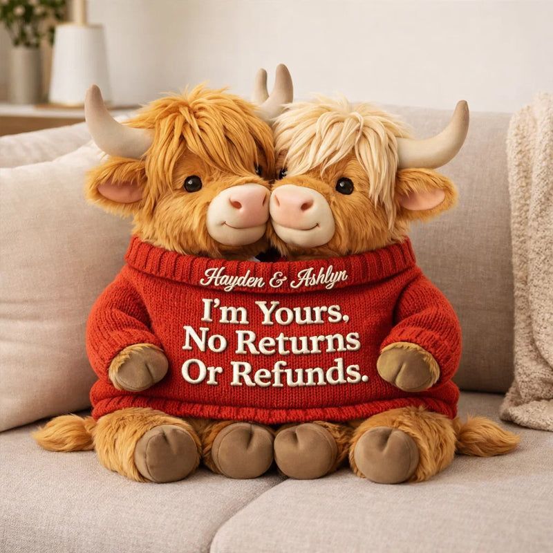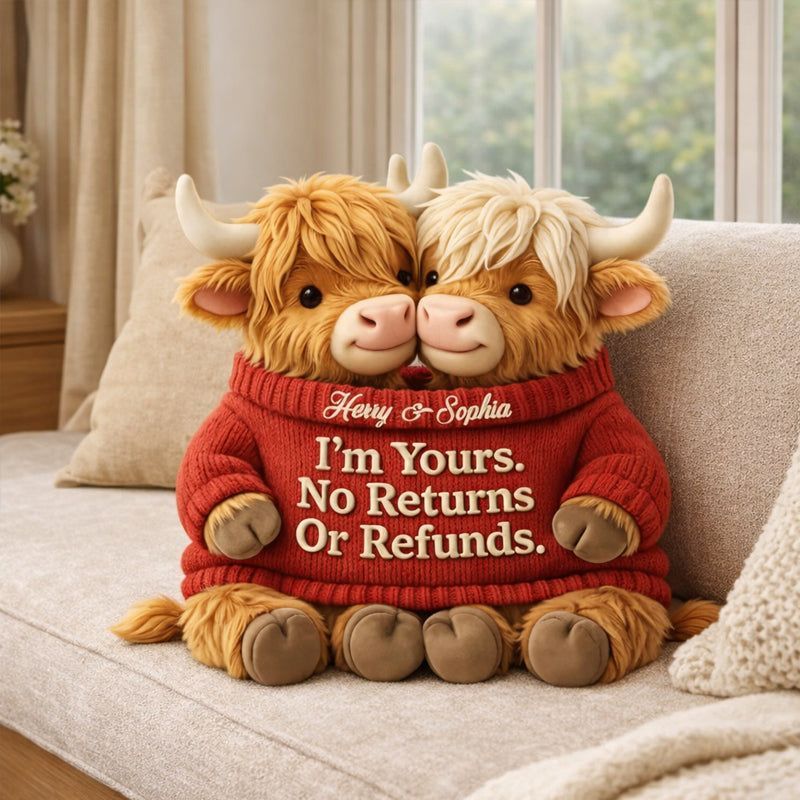I'm Yours – Personalized Highland Bull Couple Shaped Pillow
