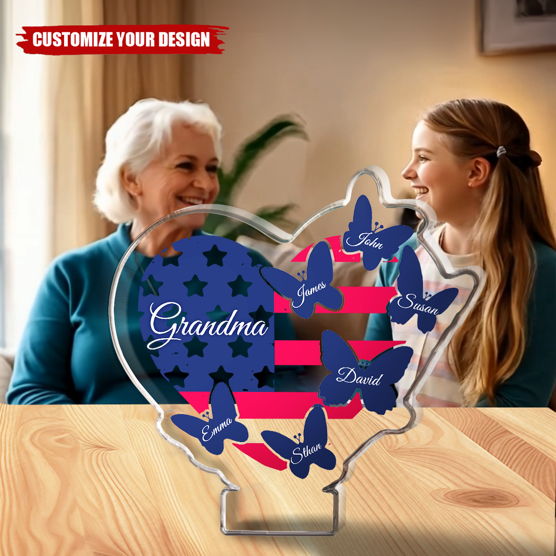 Butterfly American Flag Heart 4th Of July, Personalized Acrylic Plaque