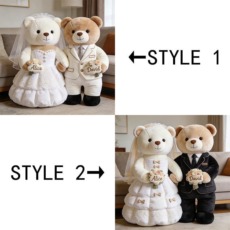 Personalized Just Married Bear Couple Throw Pillow
