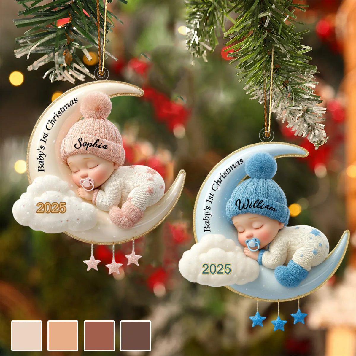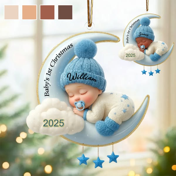 Custom Baby's First Christmas Ornament, 3D Moon Acrylic Keepsake