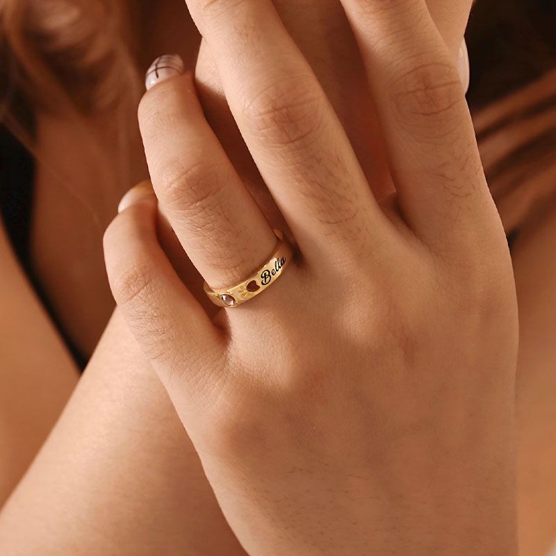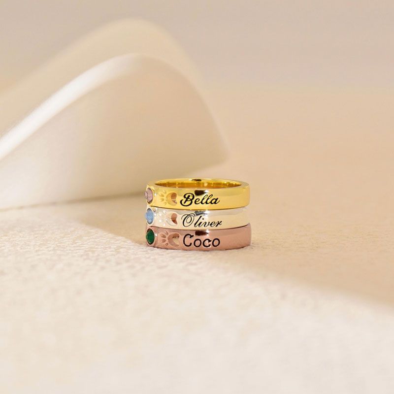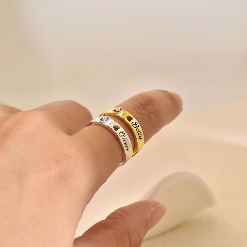 Personalized Birthstone Name Memorial Pet Paw Ring-Pet Loss Sympathy Gift